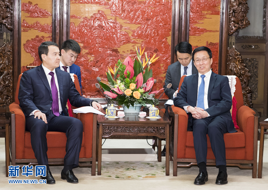 韓正表示,中哈是友好鄰邦和全面戰(zhàn)略伙伴。在習(xí)近平主席和納扎爾巴耶夫總統(tǒng)的戰(zhàn)略引領(lǐng)和親自推動下,中哈關(guān)系保持高水平運行,已成為國與國之間和睦相處、互利共贏的典范。雙方高層交往密切,政治互信不斷增強,共建“一帶一路”成果豐碩。希望雙方進一步發(fā)揮好中哈合作委員會重要作用,加強發(fā)展戰(zhàn)略對接,推進經(jīng)貿(mào)、投資、海關(guān)、金融等領(lǐng)域務(wù)實合作,支持兩國企業(yè)按商業(yè)化市場化原則加強項目合作,推動中哈合作不斷取得新進展。