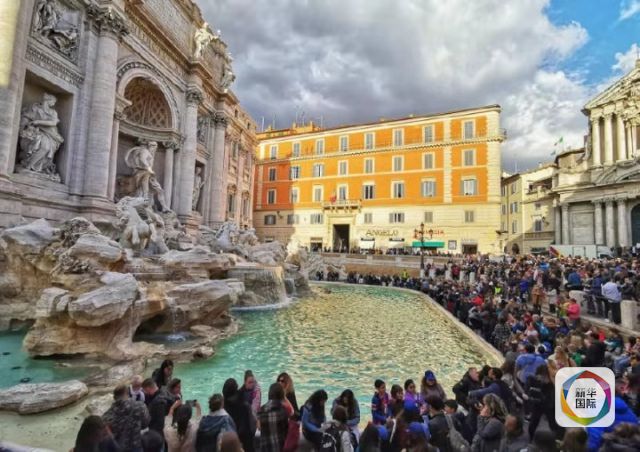 羅馬著名景點許愿池附近游人如織。新華社記者王曄攝