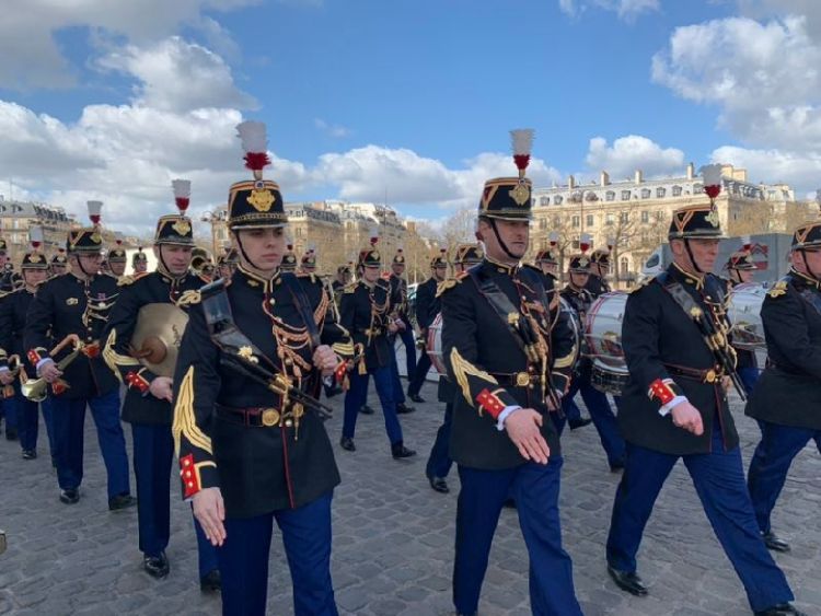 凱旋門(mén)星形廣場(chǎng)上,儀仗隊(duì)和軍樂(lè)團(tuán)整齊列隊(duì),靜候習(xí)近平主席的到來(lái)。新華社記者 高潔 攝