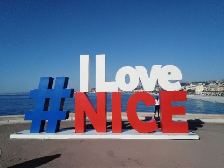 尼斯在恐怖襲擊重創(chuàng)后豎起“我愛(ài)尼斯”的標(biāo)志。2016年7月15日,習(xí)近平就尼斯恐襲事件向時(shí)任法國(guó)總統(tǒng)奧朗德致慰問(wèn)電。新華社記者 饒愛(ài)民 攝