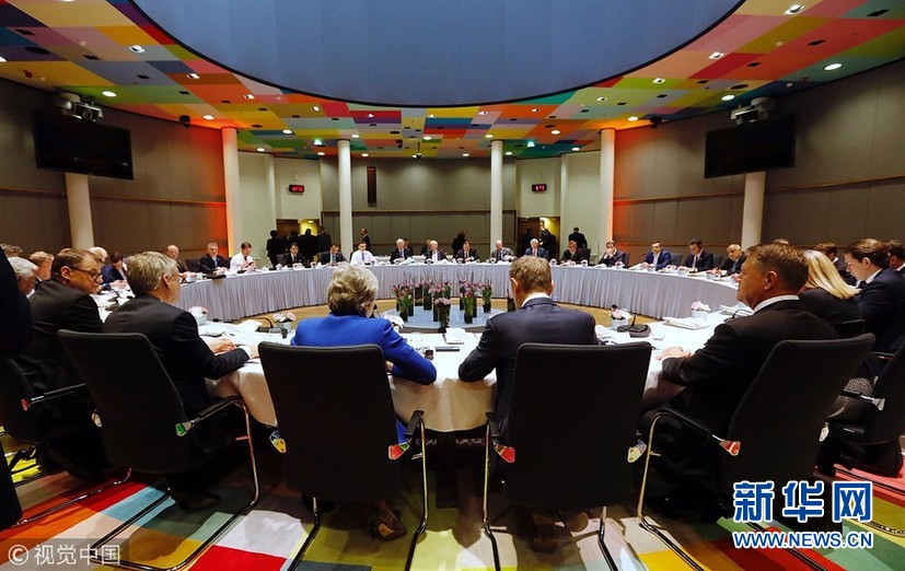 當(dāng)?shù)貢r間2019年4月10日,比利時布魯塞爾,歐盟領(lǐng)導(dǎo)人會議召開,討論英國“脫歐”議題。據(jù)路透社消息,歐盟各成員國達(dá)成一致,允許英國延期“脫歐”至10月底,6月份歐盟還將對此決定再次評估。歐洲理事會主席圖斯克表示,歐盟各成員國達(dá)成一致,允許英國延期“脫歐”,現(xiàn)在他將與英國首相特雷莎·梅舉行會談,確定英國是否接受這一提議。(圖片來源:視覺中國)