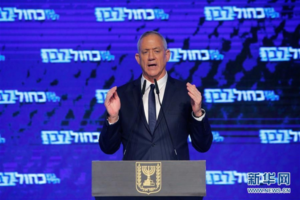 以色列藍(lán)白黨領(lǐng)導(dǎo)人甘茨4月10日晚發(fā)表講話,承認(rèn)在議會(huì)選舉中失敗。這是4月9日,在以色列特拉維夫,以色列藍(lán)白黨領(lǐng)導(dǎo)人甘茨對(duì)支持者講話。新華社發(fā)(吉爾·科恩·馬根 攝)
