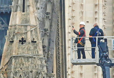 4月16日,一名工作人員為大火后的巴黎圣母院拍照。新華社發(fā)
