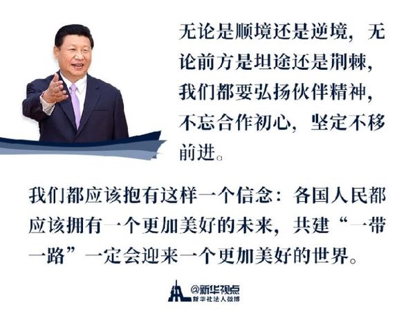 “我們要乘勢而上、順勢而為,推動‘一帶一路’建設(shè)行穩(wěn)致遠(yuǎn),邁向更加美好的未來?!绷?xí)主席在首屆高峰論壇上這樣說。