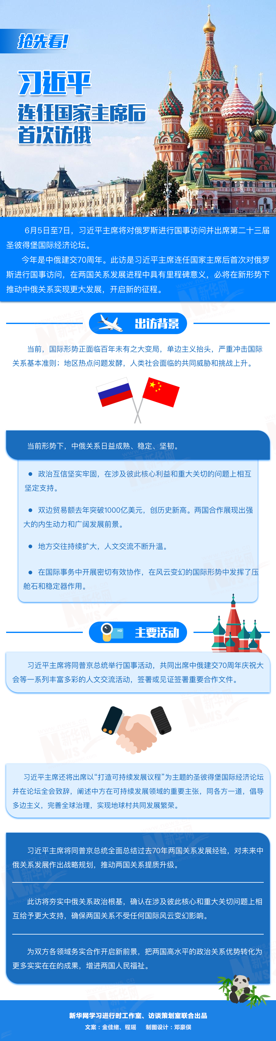 訪問期間,習近平主席還將出席圣彼得堡國際經濟論壇,在論壇全會致辭,闡述中方在可持續(xù)發(fā)展領域的重要主張,同各方一道,倡導多邊主義,完善全球治理,實現(xiàn)地球村共同發(fā)展繁榮。