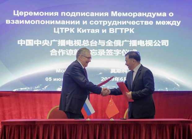 雙方簽署《中國(guó)中央廣播電視總臺(tái)與全俄廣播電視公司合作諒解備忘錄》