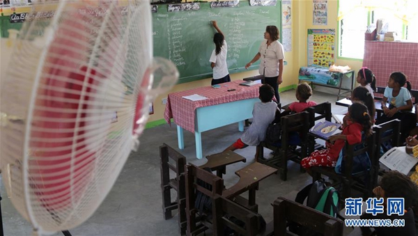 菲律賓中小學(xué)6月開(kāi)始新學(xué)年。坐在明亮涼爽的教室中,巴利瓦特小學(xué)的孩子們十分興奮。“現(xiàn)在有了電燈、電風(fēng)扇,孩子們終于不用渾身濕漉漉地趴在書(shū)桌上費(fèi)力讀書(shū)了?!苯處煱@荨たㄍ呒铀拐f(shuō)。