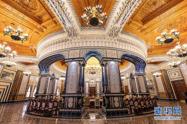 這是4月14日在塔吉克斯坦首都杜尚別拍攝的納烏魯茲宮阿爾章會(huì)議廳。新華社記者 白雪騏 攝 點(diǎn)擊高清圖集>>