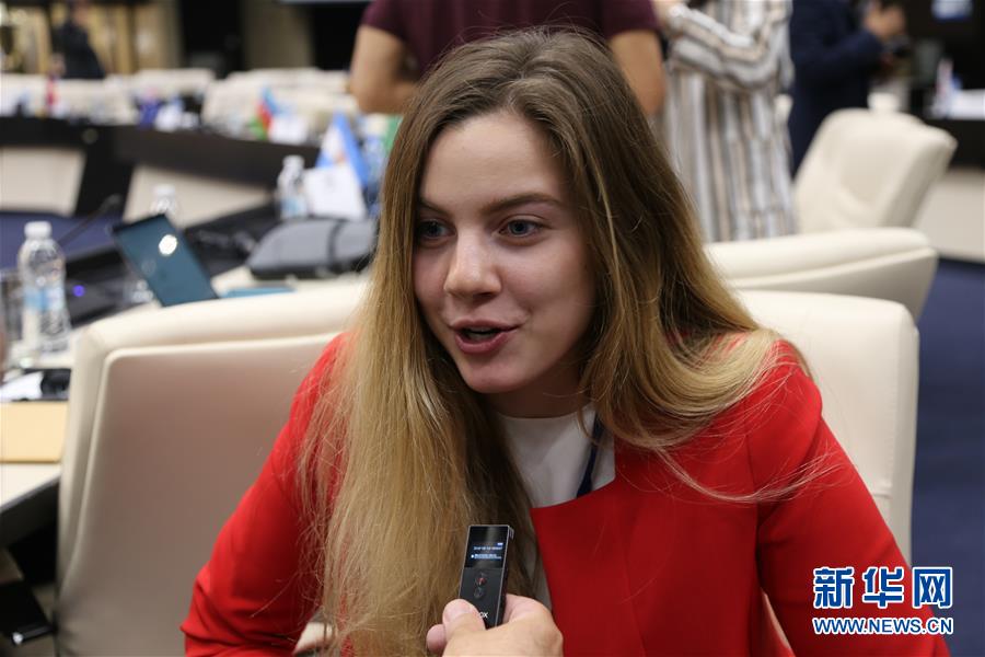 6月14日,在保加利亞首都索非亞,新華社、俄羅斯塔斯社和中國搜狗公司共同研發(fā)的俄語AI合成主播“麗莎”(Lisa)的真人原型、塔斯社國際關(guān)系部首席專家澤連斯卡婭接受新華社記者采訪。新華社記者 戰(zhàn)小漪 攝