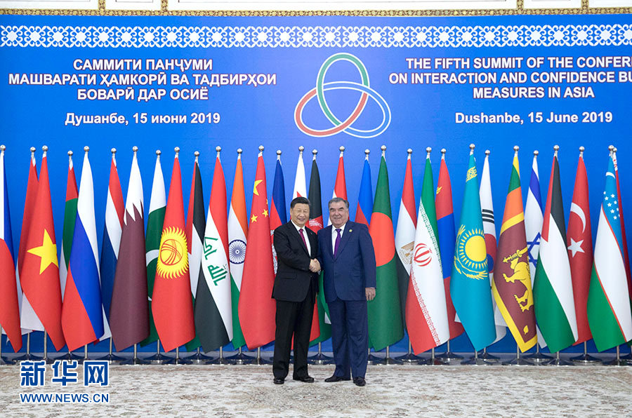 6月15日,亞洲相互協(xié)作與信任措施會(huì)議第五次峰會(huì)在塔吉克斯坦首都杜尚別舉行。國(guó)家主席習(xí)近平出席峰會(huì)并發(fā)表題為《攜手開創(chuàng)亞洲安全和發(fā)展新局面》的重要講話。 新華社記者 李濤 攝