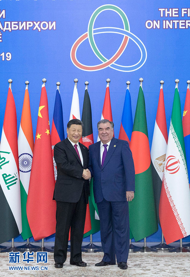 6月15日,亞洲相互協(xié)作與信任措施會(huì)議第五次峰會(huì)在塔吉克斯坦首都杜尚別舉行。國(guó)家主席習(xí)近平出席峰會(huì)并發(fā)表重要講話。這是習(xí)近平抵達(dá)納烏魯茲宮迎賓廳,受到塔吉克斯坦總統(tǒng)拉赫蒙熱情迎接。 新華社記者 王曄 攝