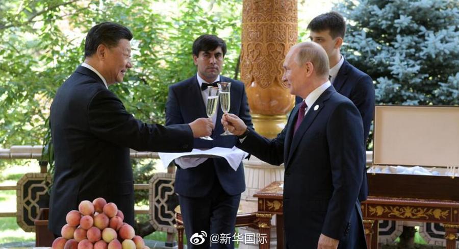 【俄羅斯總統(tǒng)普京當(dāng)面向習(xí)近平主席祝賀生日】俄羅斯塔斯社、俄新社6月15日上午報(bào)道稱,據(jù)俄總統(tǒng)新聞秘書佩斯科夫介紹,俄總統(tǒng)普京今天上午在杜尚別出席亞信第五次峰會(huì)前親自前往中國(guó)國(guó)家主席習(xí)近平下榻賓館,當(dāng)面向習(xí)主席祝賀66歲生日。普京高度評(píng)價(jià)習(xí)主席在俄中關(guān)系發(fā)展中發(fā)揮的重要作用,強(qiáng)調(diào)不久前習(xí)主席對(duì)俄進(jìn)行國(guó)事訪問取得圓滿成功,相信俄中關(guān)系將繼續(xù)保持良好發(fā)展勢(shì)頭。習(xí)主席對(duì)普京表示感謝,指出普京在中國(guó)很受歡迎。普京總統(tǒng)向習(xí)主席贈(zèng)送俄羅斯冰淇淋,習(xí)主席回贈(zèng)中國(guó)茶葉。