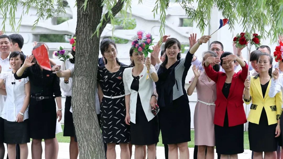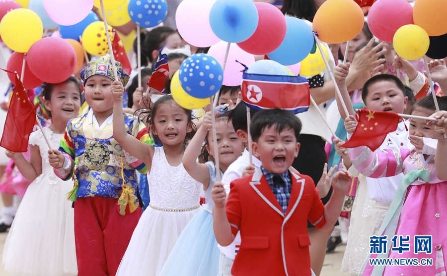 到處都是熱情的笑臉,友好的歡呼聲不絕于耳。習近平和金正恩向歡迎的人群頻頻揮手致意。