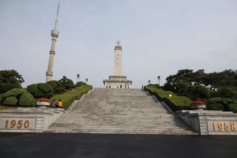 為紀念中國人民志愿軍烈士,朝方在1959年于平壤市中心立起這座中朝友誼塔。塔身上用朝文書“友誼塔”三個大字,刻有兩國人民共同斗爭和建設浮雕。這座友誼塔于近日修繕,基座處增加了兩處年份數(shù)字,分別象征中國人民志愿軍進入朝鮮和班師回國的年份。新華社記者劉艷霞攝