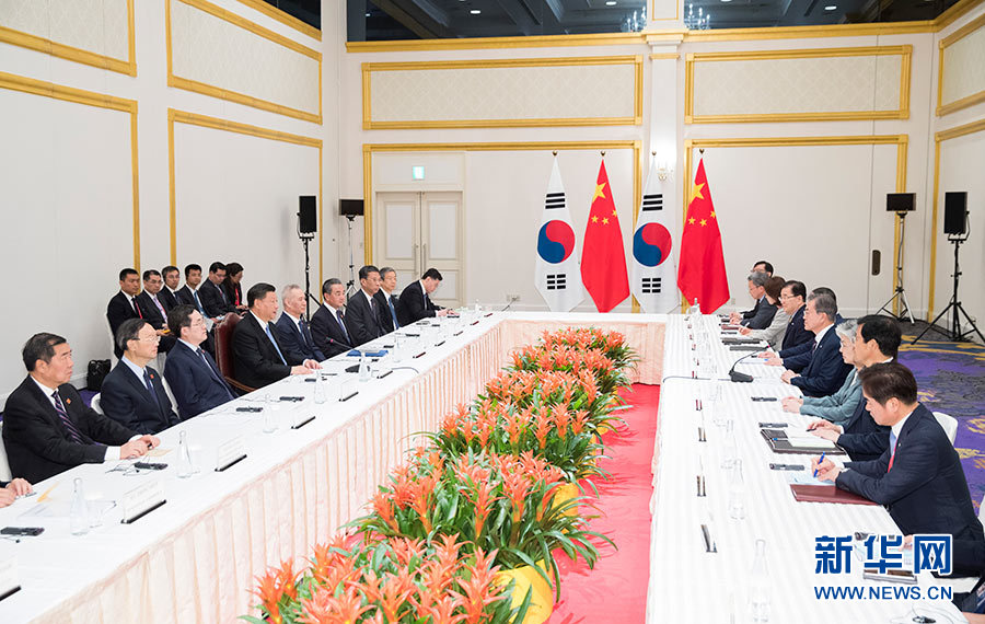 習(xí)近平指出,加強(qiáng)中韓友好合作符合歷史潮流,也是兩國人心所向。中方愿同韓方堅持以誠相待,努力實現(xiàn)合作共贏,推動兩國關(guān)系不斷向前發(fā)展,并為朝鮮半島和地區(qū)和平穩(wěn)定作出貢獻(xiàn)。雙方要保持各層次溝通,把穩(wěn)雙邊關(guān)系發(fā)展大方向。要把握共建“一帶一路”機(jī)遇,加快中韓自由貿(mào)易協(xié)定第二階段談判,不斷擴(kuò)大貿(mào)易、科技、財經(jīng)、環(huán)保等領(lǐng)域合作。要積極開展人文交流,鞏固中韓民間友好。中韓合作完全是互利雙贏的,不應(yīng)該受到外部壓力影響。希望韓方繼續(xù)重視、妥善處理好兩國間有關(guān)問題。雙方要加強(qiáng)在聯(lián)合國、二十國集團(tuán)等多邊框架內(nèi)的協(xié)調(diào),共同反對保護(hù)主義,支持多邊主義和自由貿(mào)易體制,推動構(gòu)建開放型世界經(jīng)濟(jì)。