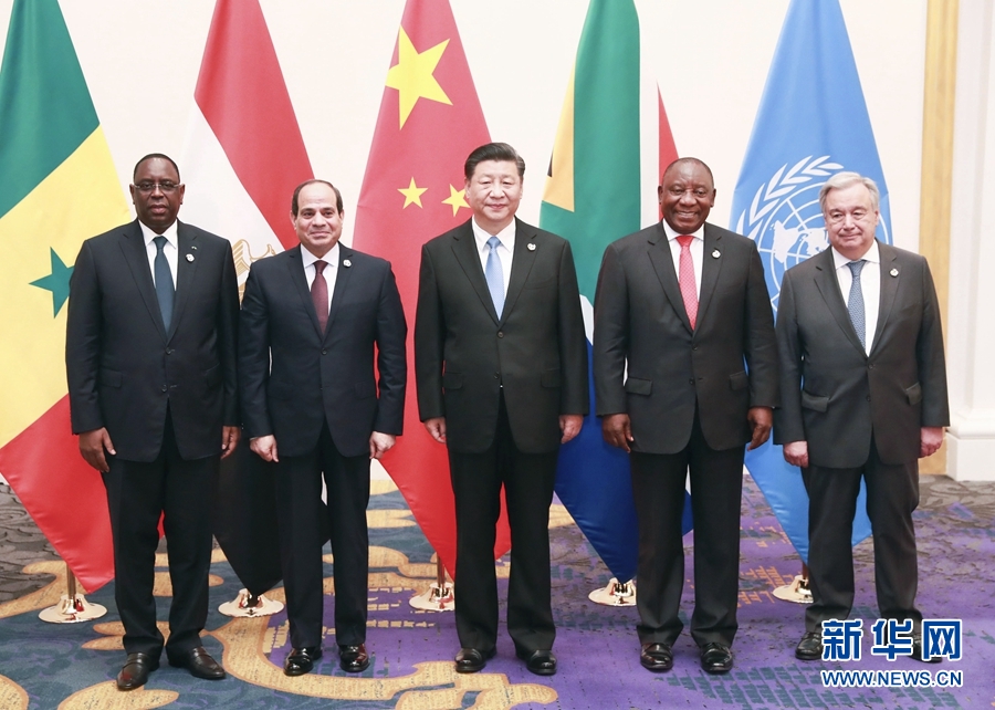6月28日,國家主席習(xí)近平在大阪主持中非領(lǐng)導(dǎo)人會晤。中非合作論壇前任非方共同主席國南非總統(tǒng)拉馬福薩、非洲聯(lián)盟輪值主席國埃及總統(tǒng)塞西、中非合作論壇現(xiàn)任非方共同主席國塞內(nèi)加爾總統(tǒng)薩勒和聯(lián)合國秘書長古特雷斯出席。 新華社記者 龐興雷 攝
