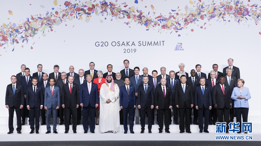 6月28日,二十國集團(tuán)領(lǐng)導(dǎo)人第十四次峰會在日本大阪舉行。國家主席習(xí)近平出席并發(fā)表題為《攜手共進(jìn),合力打造高質(zhì)量世界經(jīng)濟(jì)》的重要講話。這是習(xí)近平同其他與會領(lǐng)導(dǎo)人合影。 新華社記者 黃敬文 攝