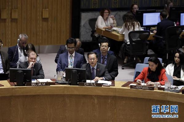 7月9日,在位于紐約的聯(lián)合國(guó)總部,中國(guó)常駐聯(lián)合國(guó)代表馬朝旭(前排中)在聯(lián)合國(guó)安理會(huì)就國(guó)際恐怖主義與有組織犯罪關(guān)聯(lián)問(wèn)題舉行的公開(kāi)辯論會(huì)上發(fā)言。中國(guó)常駐聯(lián)合國(guó)代表馬朝旭9日說(shuō),中國(guó)開(kāi)展的反恐和去極端化斗爭(zhēng),有效遏制了恐怖活動(dòng)多發(fā)頻發(fā)勢(shì)頭,最大限度保障了各族人民群眾的生存權(quán)、發(fā)展權(quán)等基本權(quán)利。新華社記者李木子攝