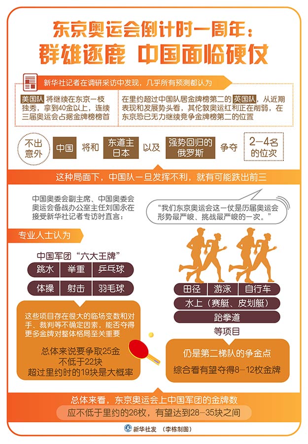 新華社北京7月23日電 題:決戰(zhàn)東京 再鑄輝煌——寫在東京奧運(yùn)會(huì)倒計(jì)時(shí)一周年之際