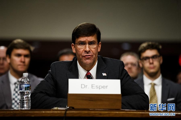 這是7月16日在美國華盛頓國會拍攝的馬克·埃斯珀參加參議院聽證會的資料照片。新華社發(fā)(沈霆 攝)