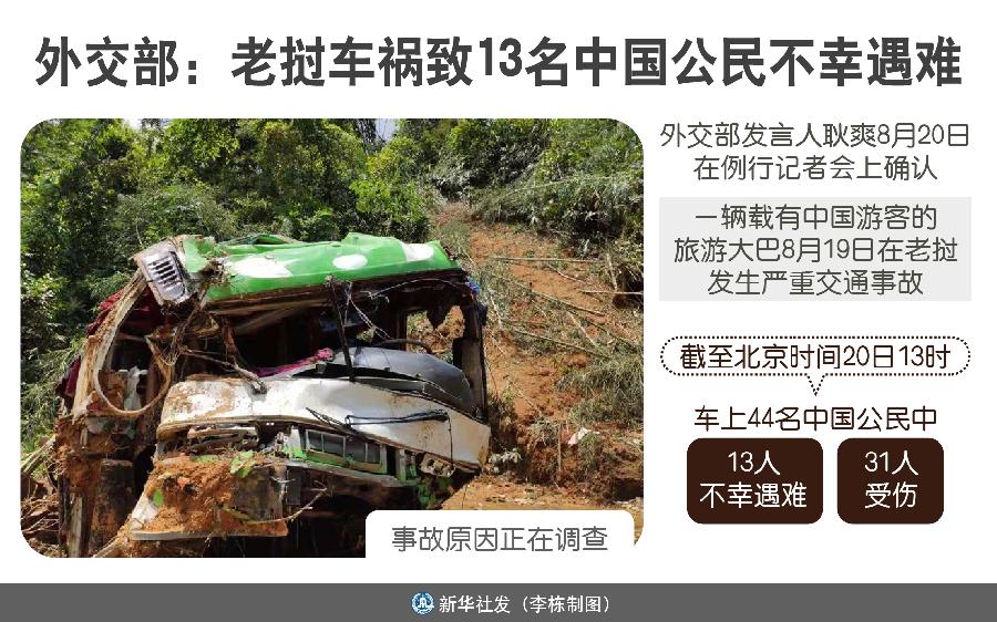 新華社北京8月20日電(記者 鄭明達(dá))外交部發(fā)言人耿爽20日在例行記者會上確認(rèn),一輛載有中國游客的旅游大巴19日在老撾發(fā)生嚴(yán)重交通事故,截至北京時間20日13時,車上44名中國公民中,13人不幸遇難,31人受傷。