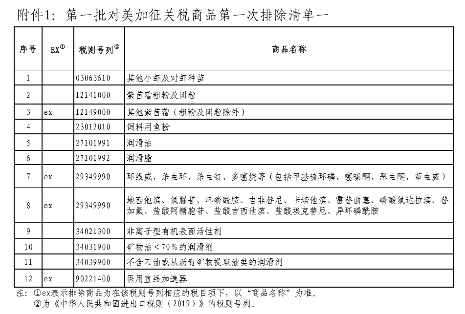 其中,清單一所列商品,自2019年9月17日至2020年9月16日,不再加征我為反制美301措施所加征的關稅。對已加征的關稅稅款予以退還,相關進口企業(yè)應自排除清單公布之日起6個月內按規(guī)定向海關申請辦理。