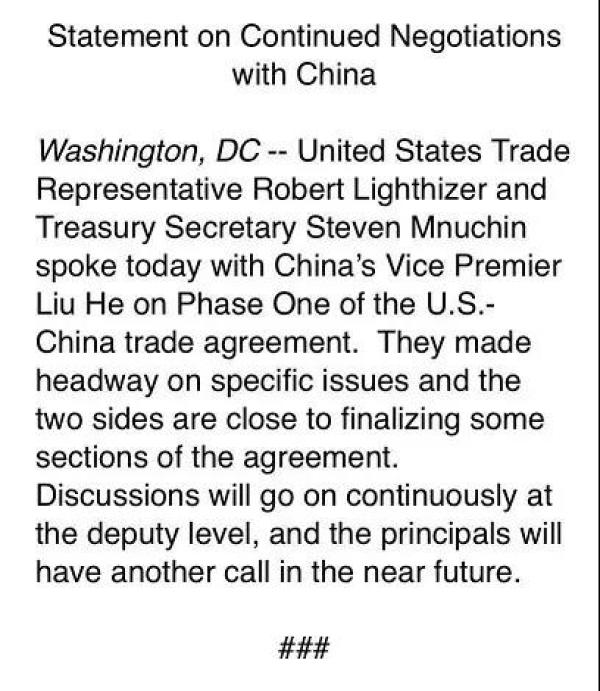 10月11日的中美經(jīng)貿(mào)高級(jí)別磋商結(jié)束后,雙方經(jīng)貿(mào)團(tuán)隊(duì)溝通一直緊鑼密鼓爭(zhēng)分奪秒地展開(kāi)。