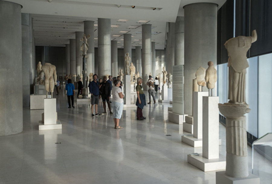 地中海溫暖的陽(yáng)光透過(guò)雅典衛(wèi)城博物館玻璃幕墻灑入展廳,一座座古希臘神話人物和建筑雕像栩栩如生,展示著美和力量,訴說(shuō)著希臘古典藝術(shù)的燦爛輝煌,令人仿佛徜徉于歷史長(zhǎng)河里,沉醉在文明畫(huà)卷中。