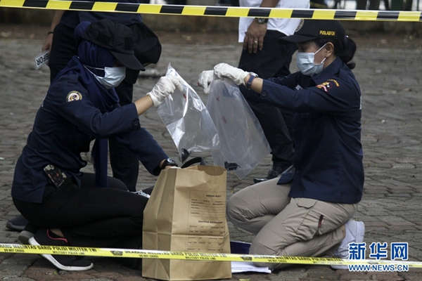 12月3日,在印度尼西亞雅加達(dá),警察在爆炸現(xiàn)場(chǎng)收集物證。新華社發(fā)(阿迪蒂亞·伊拉萬(wàn) 攝)