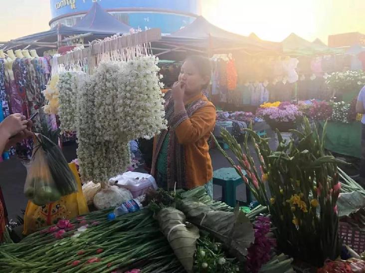 ▲習近平主席在署名文章中說:“緬甸優(yōu)美寧靜的風光、絢麗多彩的文化、勤勞淳樸的人民給我留下了深刻印象?!边@是1月15日拍攝的內(nèi)比都集市,民眾在挑選鮮花。新華社記者孟娜攝