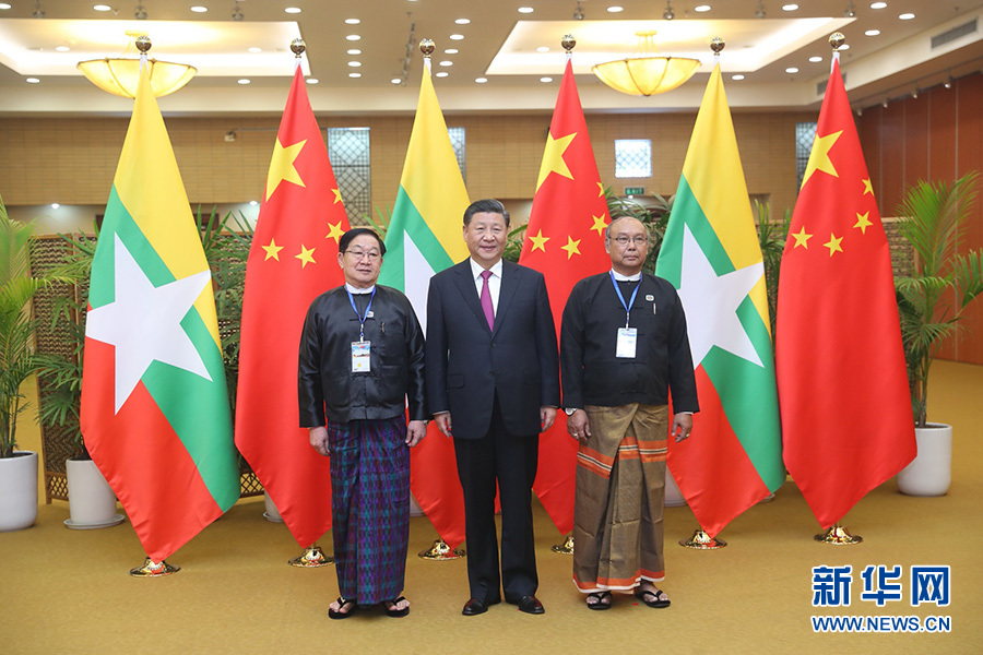 當晚,習近平同緬甸聯(lián)邦議會議長兼人民院議長蒂昆密和民族院議長曼溫凱丹進行了友好交談,并和緬甸主要政黨領(lǐng)導(dǎo)人集體合影留念。