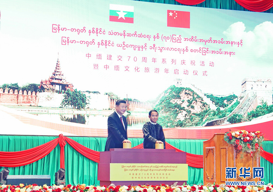 新華社內(nèi)比都1月17日電(記者霍小光 李忠發(fā) 駱珺)當?shù)貢r間1月17日晚,國家主席習近平在內(nèi)比都第二國際會議中心出席中緬建交70周年慶祝活動暨中緬文化旅游年啟動儀式。緬甸總統(tǒng)溫敏、國務(wù)資政昂山素季、緬甸第一副總統(tǒng)敏瑞、第二副總統(tǒng)亨利班提育、聯(lián)邦議會議長兼人民院議長蒂昆密、民族院議長曼溫凱丹、國防軍總司令敏昂萊、全體內(nèi)閣成員等出席。