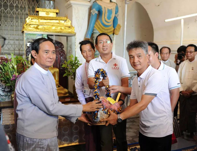 ▲2018年9月,中緬在修復(fù)因地震受損的蒲甘佛塔方面的合作正式啟動(dòng)。圖為2019年8月3日,緬甸總統(tǒng)溫敏(左一)來到蒲甘他冰瑜寺,慰問中方專家及工作組。