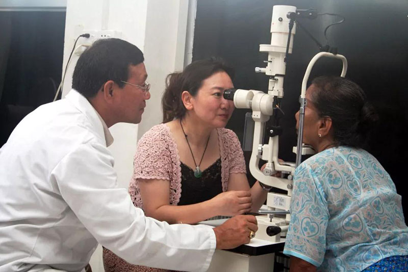 ▲2011年5月31日至6月7日,中國赴緬國際復(fù)明醫(yī)療隊(duì)在緬甸仰光開展“光明行”活動(dòng),為248名緬甸白內(nèi)障患者免費(fèi)進(jìn)行手術(shù)。圖為中緬兩國醫(yī)生為已接受手術(shù)的緬甸白內(nèi)障患者復(fù)查。