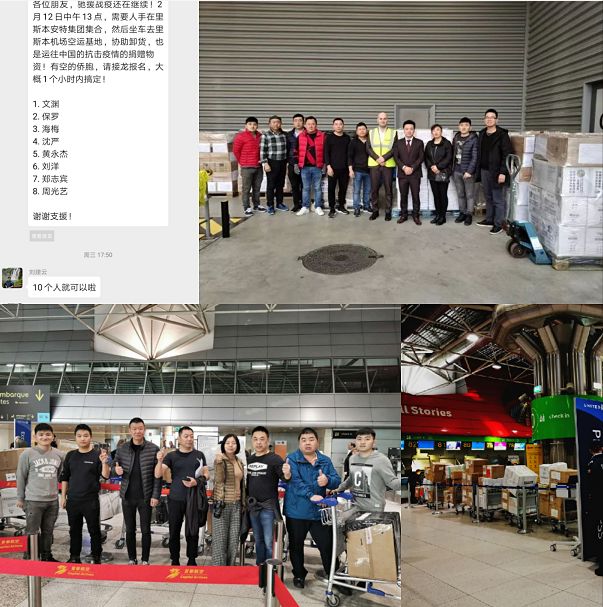 特別值得一提的是海航集團(tuán)的譚向東副董事長、高建副總裁,為了協(xié)助我們把捐贈物資盡快運回國內(nèi),高度重視,靠前指揮,第一時間給予全面而具體的支持。旗下的首都航空公司市場部副總顧凌毅、貨運中心高級經(jīng)理田國偉協(xié)調(diào)陳肖藝、倪福元、李小戈、首航西安基地總監(jiān)周瑞喜、海航速運境外管理部副總經(jīng)理池夢瑩以及郭宇萍等一批業(yè)務(wù)骨干加班加點,克服了時間緊張,物資量大,境外時差等諸多困難,創(chuàng)造了許多個“首航第一次”。蟠龍國際集團(tuán)、中遠(yuǎn)海運航空公司則為這場“空中接力”提供了高端快捷的航空物流平臺。而在第四批物資回運過程中,更是得到了溫州市防疫指揮部的鼎力相助,幫助我們把西班牙巴塞羅那收集點上的捐贈物資,從布魯塞爾轉(zhuǎn)道回國。