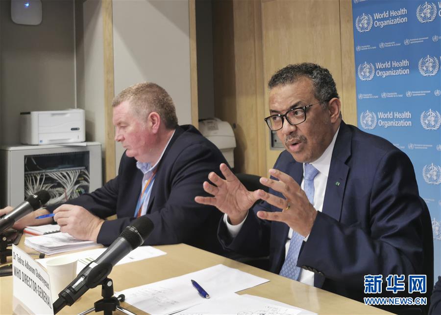 3月2日,在瑞士日內(nèi)瓦,世界衛(wèi)生組織總干事譚德塞(右)出席當(dāng)天的世衛(wèi)組織例行記者會。新華社記者 陳俊俠 攝