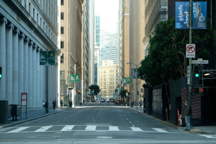 資料圖片:3月20日,在美國加利福尼亞州舊金山,街上行人稀少。新華社