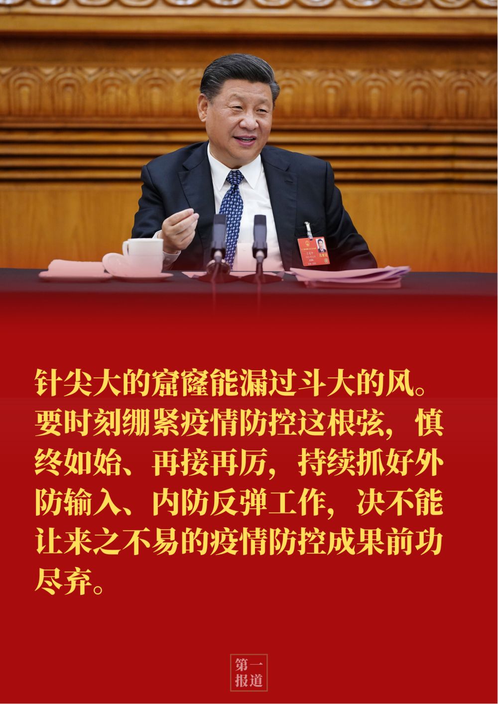 習(xí)近平指出:“針尖大的窟窿能漏過(guò)斗大的風(fēng)。要時(shí)刻繃緊疫情防控這根弦,慎終如始、再接再厲,持續(xù)抓好外防輸入、內(nèi)防反彈工作,決不能讓來(lái)之不易的疫情防控成果前功盡棄?!?