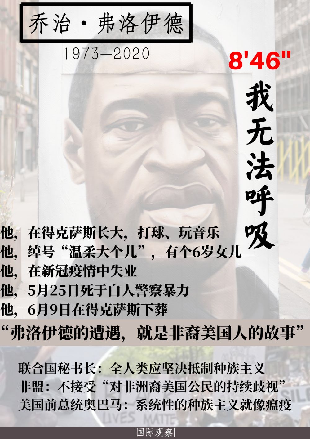 他死前“我無法呼吸”的懇求,在大選年和新冠疫情中,把美國帶入“痛苦時刻”,將長久地載入美國當(dāng)代史。
