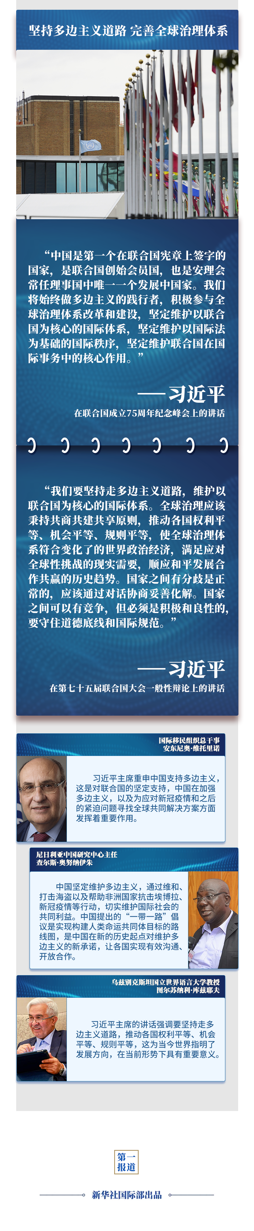 在聯(lián)合國成立75周年之際,習(xí)主席通過視頻方式,在聯(lián)合國這一多邊外交舞臺(tái)闡述關(guān)于國際秩序和人類前途命運(yùn)的中國主張,為國際社會(huì)應(yīng)對全球性挑戰(zhàn)、推動(dòng)共同發(fā)展指明方向,為世界各國攜手構(gòu)建人類命運(yùn)共同體、共創(chuàng)更加美好的未來注入信心和動(dòng)力——