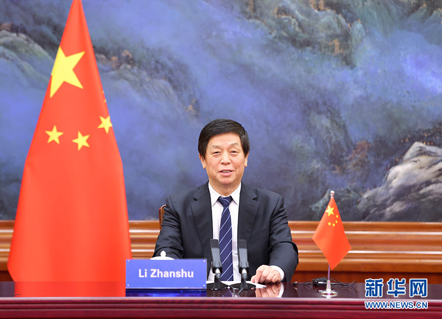 10月27日,全國(guó)人大常委會(huì)委員長(zhǎng)栗戰(zhàn)書在北京人民大會(huì)堂出席第六屆金磚國(guó)家議會(huì)論壇視頻會(huì)議并發(fā)表講話。 新華社記者 龐興雷 攝