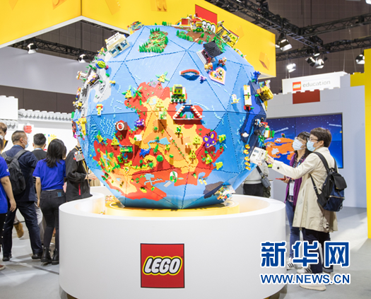 樂高玩具拼成的“地球”在樂高展區(qū)特別引人注目。新華網(wǎng) 發(fā)
