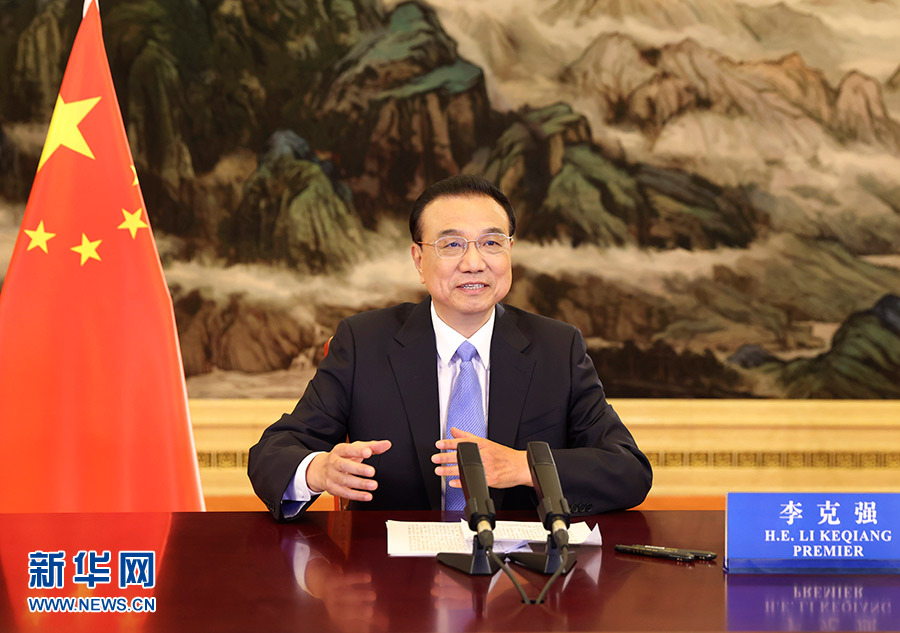 11月13日下午,國務(wù)院總理李克強(qiáng)在東盟商務(wù)與投資峰會(huì)上發(fā)表視頻致辭。 新華社記者 龐興雷 攝