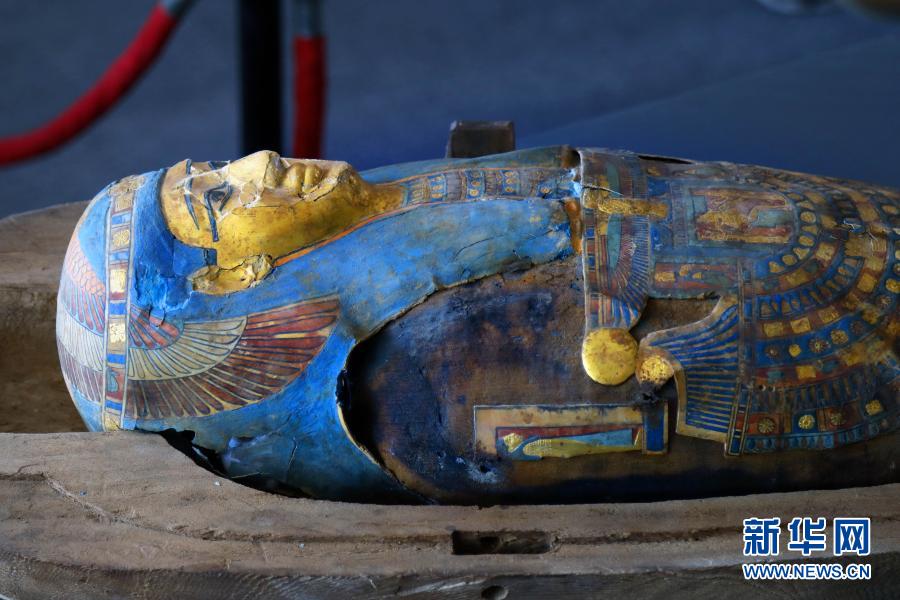 這是11月14日在埃及吉薩拍攝的彩繪木棺。新華社發(fā)(艾哈邁德·戈馬攝)