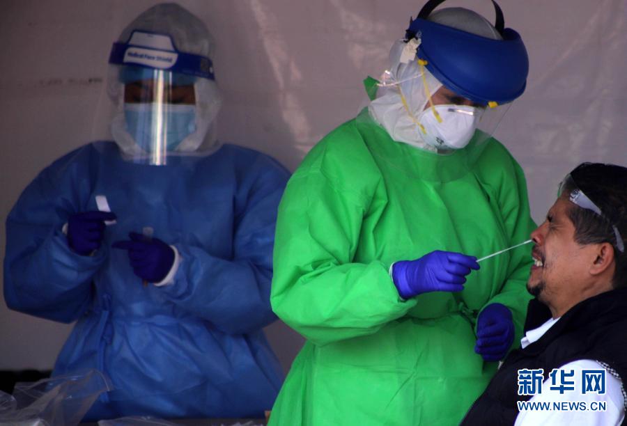11月14日,在墨西哥首都墨西哥城,醫(yī)務人員為一名男子采集檢測樣本。