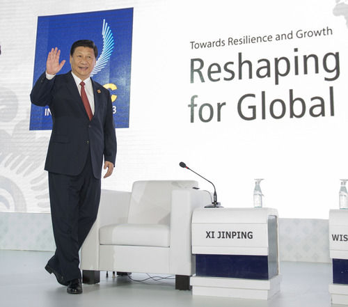 2013年10月7日,國家主席習(xí)近平在印度尼西亞巴厘島出席亞太經(jīng)合組織工商領(lǐng)導(dǎo)人峰會,并發(fā)表《深化改革開放共創(chuàng)美好亞太》的重要演講。新華社記者 李學(xué)仁 攝