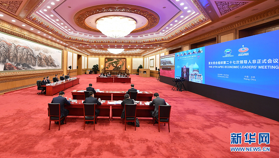 11月20日晚,國家主席習(xí)近平在北京以視頻方式出席亞太經(jīng)合組織第二十七次領(lǐng)導(dǎo)人非正式會議并發(fā)表重要講話。 新華社記者 李響 攝
