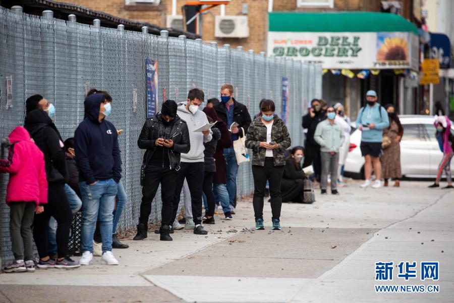 11月21日,人們在美國紐約排隊等待接受新冠病毒檢測。美國約翰斯·霍普金斯大學21日發(fā)布的新冠疫情最新統(tǒng)計數(shù)據(jù)顯示,美國累計確診病例超過1200萬例。新華社發(fā)(郭克攝)
