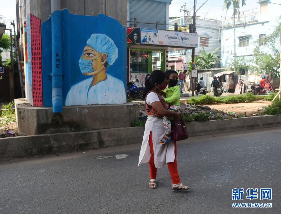 11月25日,在印度阿加爾塔拉,一名女子抱著孩子在街頭行走。新華社發(fā)