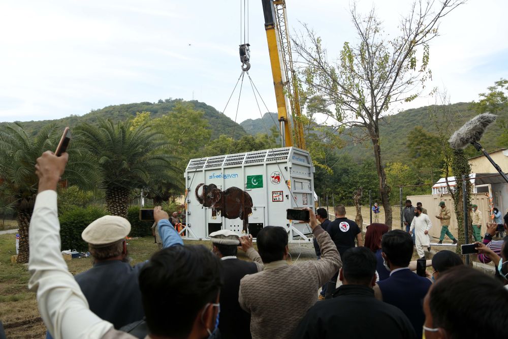 ↑人們在伊斯蘭堡送別亞洲象“卡萬”